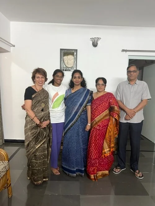 Me and Dr. Yadav at the home of NALSAR Vice Chancellor Dr. Krishna Deva Rao. Dr. Rao was probably the first person in India I spoke to before my first visit in 2020, when he was still Vice-Chancellor at NLU Delhi. He was kind enough to respond to my inquiries about his access to justice work in paralegal education, and sealed the deal for my Fulbright application by agreeing to host me as a Fulbright scholar.